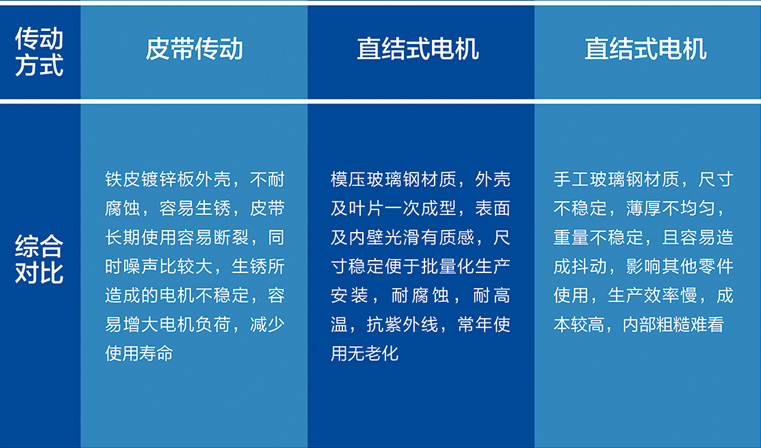 SMC模壓風(fēng)機(jī)與傳統(tǒng)鐵皮鍍鋅板風(fēng)機(jī)及手工玻璃鋼風(fēng)機(jī),無(wú)論在性能、外觀,都有著明顯的優(yōu)勢(shì)。